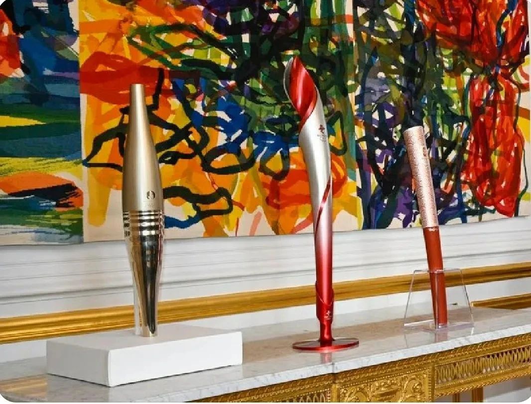 當(dāng)?shù)貢r間5月6日下午,國家主席習(xí)近平在巴黎愛麗舍宮同法國總統(tǒng)馬克龍舉行會談。會談前,兩國元首夫婦互贈禮品,其中三支奧運火炬尤為引人注目。