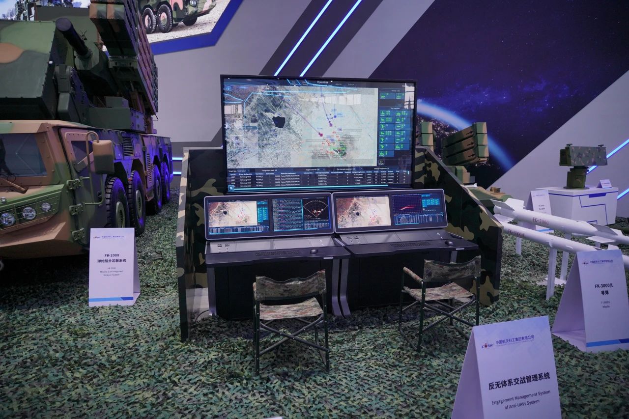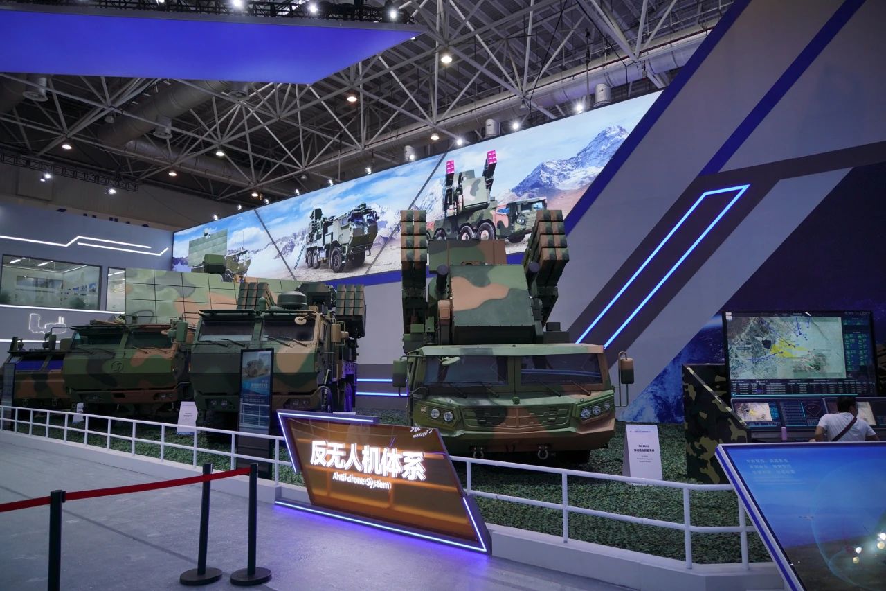 在防空體系展區,HQ-9BE遠程防空武器系統、FD-2000A中遠程防空武器系統、FK-3中遠程防空武器系統、HQ-17AE近程防空武器系統等“明星裝備”煥新亮相。