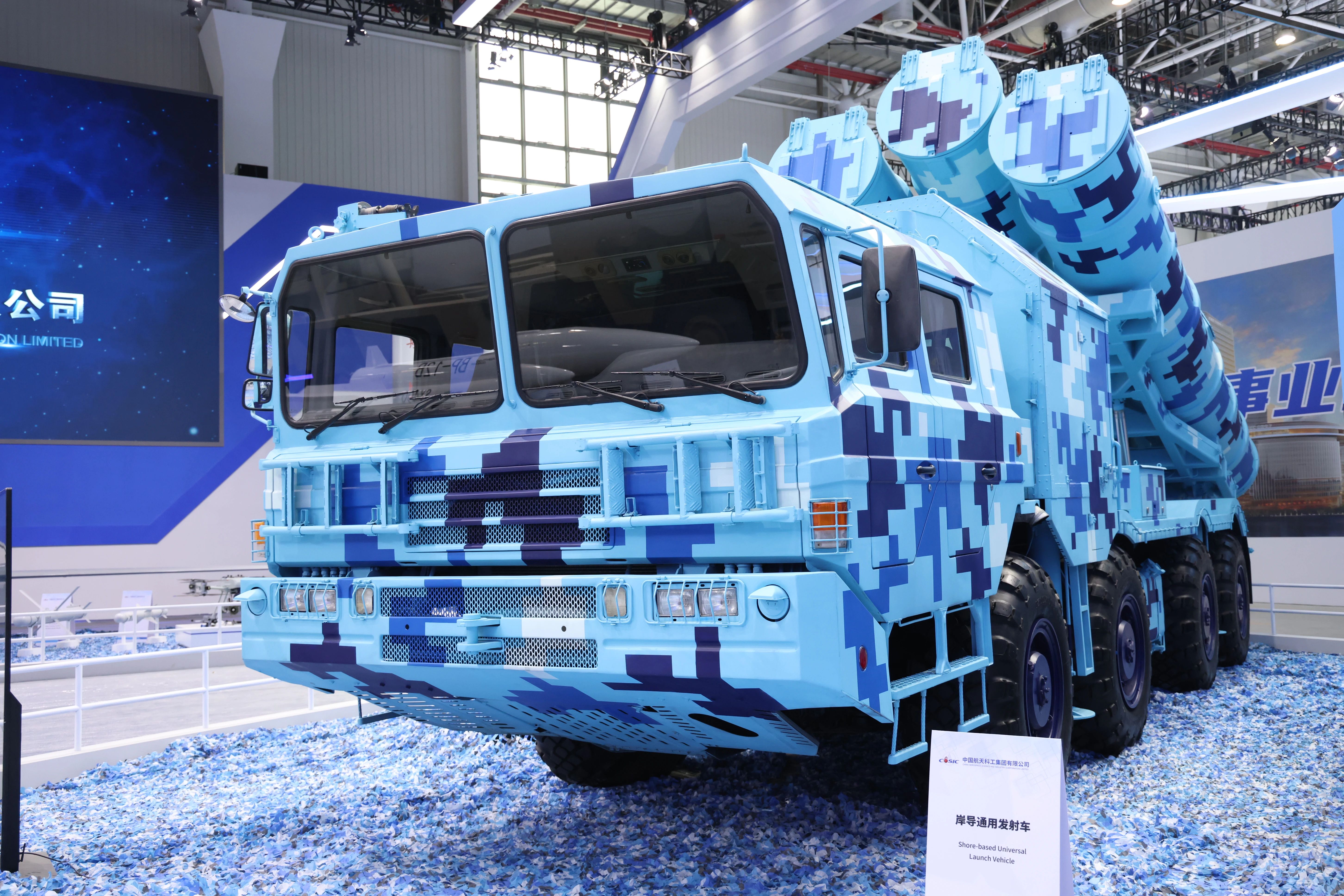 岸導通用發射車可作為YJ-12E、CM-802B、CM-103等各型岸艦導彈的發射平臺,具有良好的機動性及越野性能。集裝箱發射單元采用標準集裝箱隱蔽外形,可靈活布置在艦船、拖車、野外固定陣地等多種場地,具有隱蔽性強、通用化程度高、部署靈活等特點,可有效補充現有平臺作戰能力。