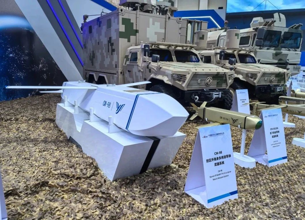 首秀登場的CM-98是根據國際市場需求研制的一型隱身多用途導彈武器系統,可在防區外遂行打擊對方機場跑道、停機坪、技術兵器陣地等高價值目標,具有全天時、全天候使用,高隱身穿透、抗干擾突防、寬飛行包絡、高效能毀傷、易于維護保障等特點。