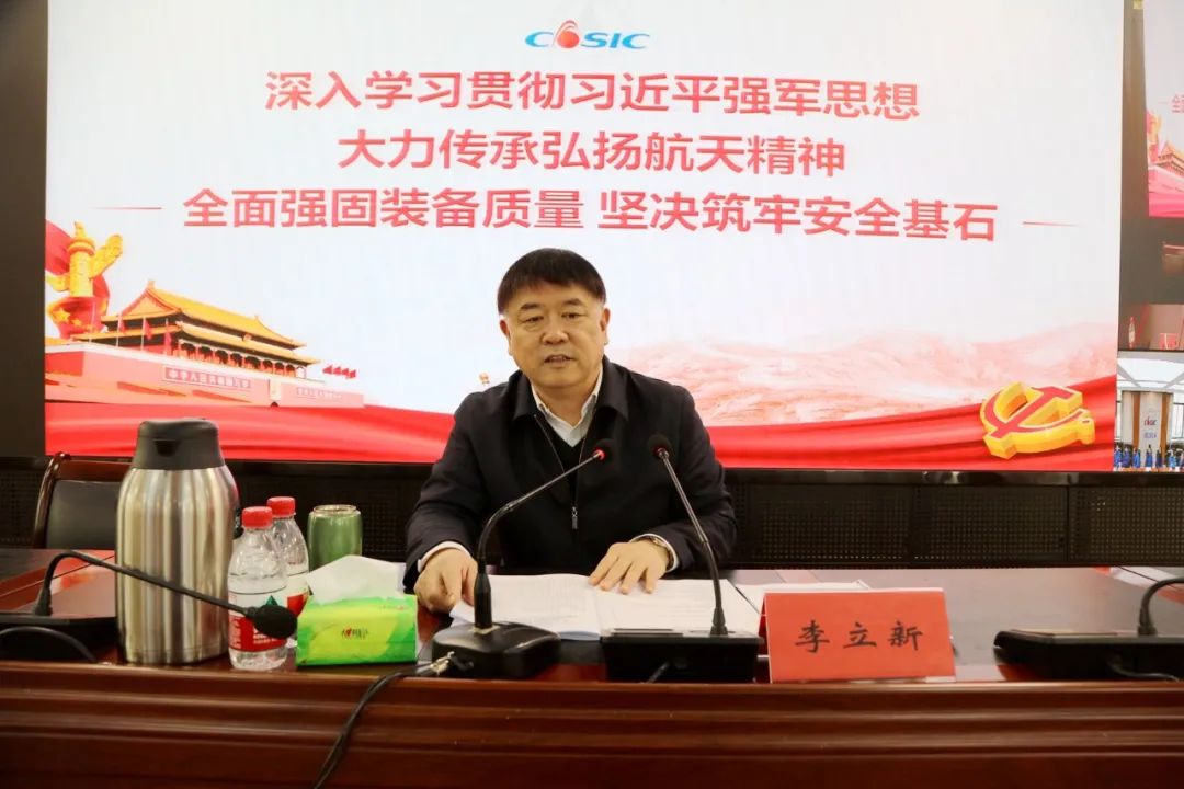 李立新圍繞“深入學習貫徹習近平強軍思想 大力傳承弘揚航天精神 全面強固裝備質量 堅決筑牢安全基石”主題,帶領大家深入學習習近平強軍思想的豐富內涵,習近平總書記關于發展航天事業、加強裝備質量、做好安全生產等方面的重要論述和重要指示批示精神。他飽含深情地回顧了中國航天固體動力事業的發展歷程,系統闡述了航天精神的特質內涵,緊密結合六院形勢任務和具體實例,對學習貫徹習近平強軍思想、大力傳承弘揚航天精神,進一步強固裝備質量、加強安全生產等工作提出了具體要求。