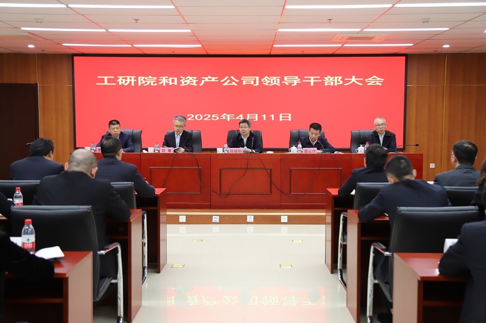 4月11日,工研院和資產(chǎn)公司召開領(lǐng)導干部大會。中國航天科工集團有限公司黨組書記、董事長陳錫明,黨組成員、副總經(jīng)理、人力資源部部長唐應偉出席會議。工研院和資產(chǎn)公司全體領(lǐng)導班子成員,本部部門副職級及以上人員和所屬單位領(lǐng)導班子成員參加會議。