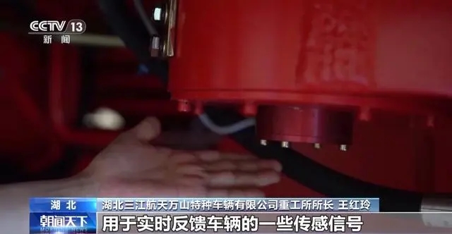之所以兩輛車能做到協同作業,是因為自行式模塊運輸車有一套強大的控制系統,如果把這輛車比作人的話,控制系統就相當于人的大腦,用于接收控制指令,輸出整車的控制信號。同時,車上還有很多粉紅色的傳感元件,用于實時反饋車輛的傳感信號,保障車輛協同作業。