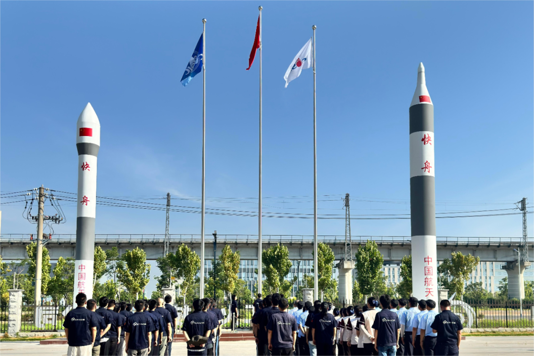 高輝文在升旗儀式上指出,1969年8月11日,周恩來總理批示“同意”建設066基地,老一輩066人胸懷獻身國防、建設祖國的崇高理想,蘆席棚里搞科研,自主研發鑄神劍,開辟了三線企業獨立研制型號裝備的先河。55年來,三江人深化改革、穩固基業,搶抓機遇、發展壯大,航天防務領域多型產品并駕齊驅,快舟火箭常態化發射,以激光裝備、智能移動裝備為代表的一大批產品次第展開,每一項事業都凝聚著三江人的心血和汗水,每一份榮耀都鐫刻著三江人的責任與擔當。
