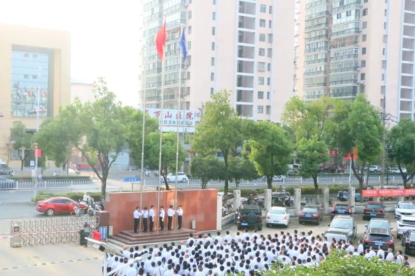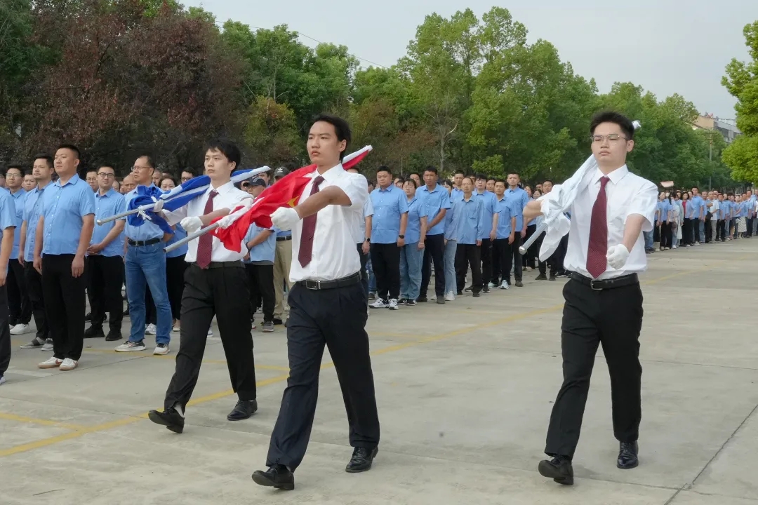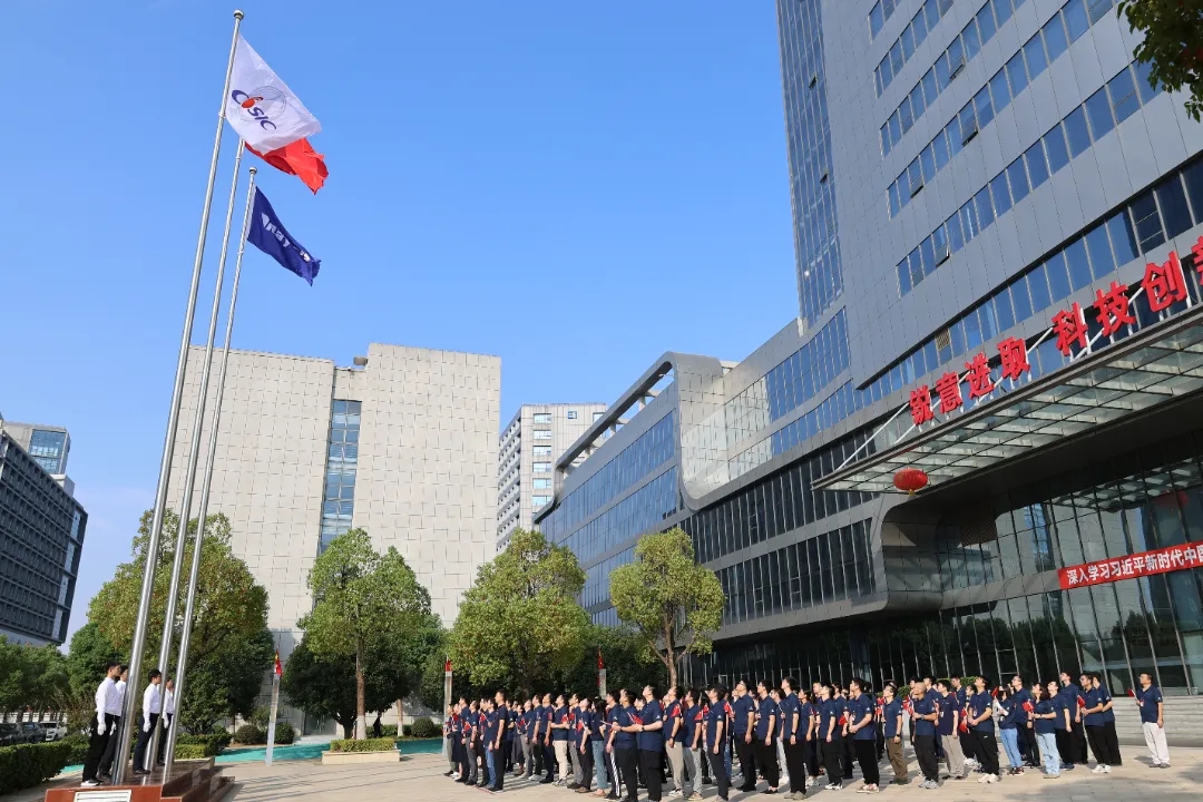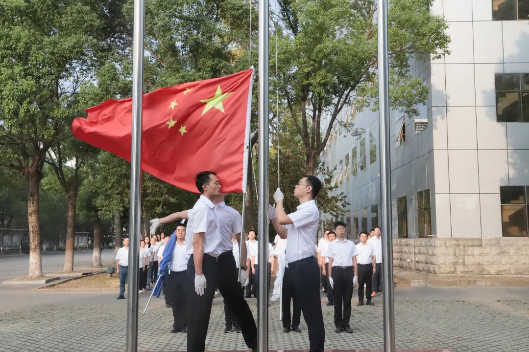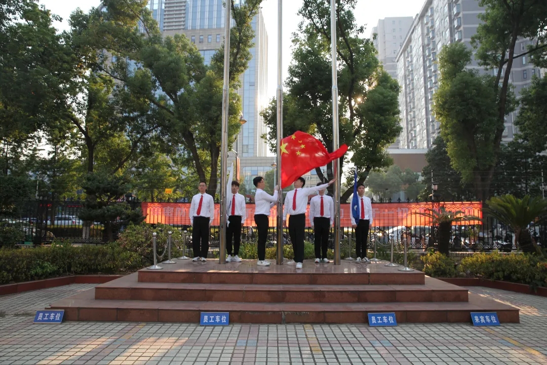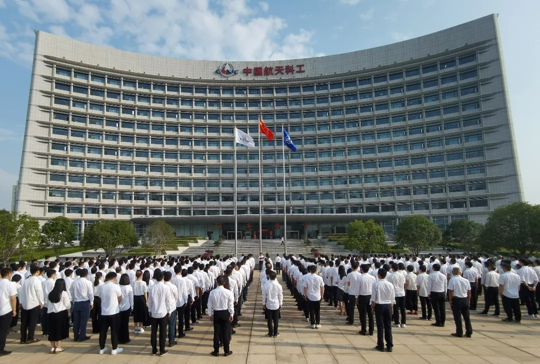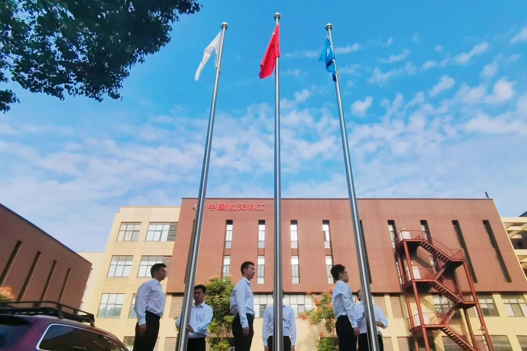 伴隨著國歌的雄壯旋律,鮮艷的五星紅旗冉冉升起,參加升旗儀式的干部職工面向國旗行注目禮、高唱國歌,送出對祖國母親的深深祝福。在集團公司司歌聲中,司旗迎風飄揚,大家以昂揚的斗志,表達對航天事業的熾熱情懷。