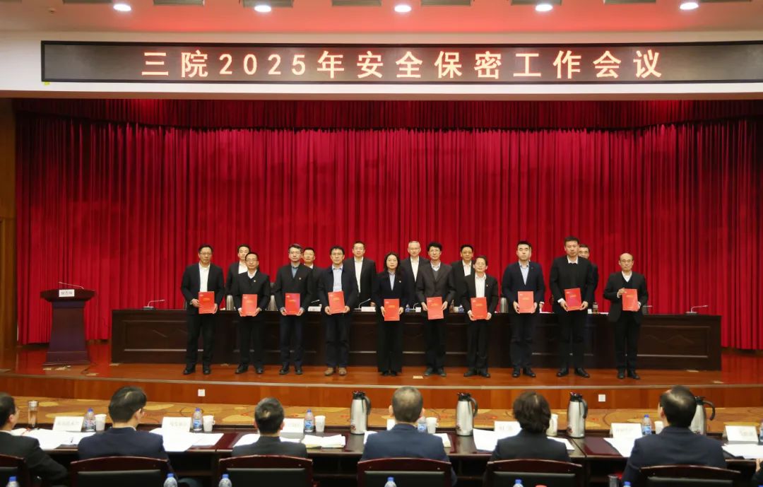 會議作了題為《強化問題導(dǎo)向 提升治理能力 以高水平安全促進高質(zhì)量發(fā)展》的安全保密工作報告,宣讀了三院2024年度安全生產(chǎn)、保密、保衛(wèi)工作先進表彰的決定,通報了三院2024年《安全保密責任書》考核完成情況,并作2025年《安全保密責任書》說明。院領(lǐng)導(dǎo)向三級單位黨政主要負責人頒發(fā)了2025年《安全保密責任書》。