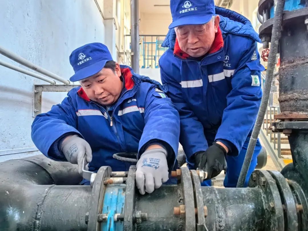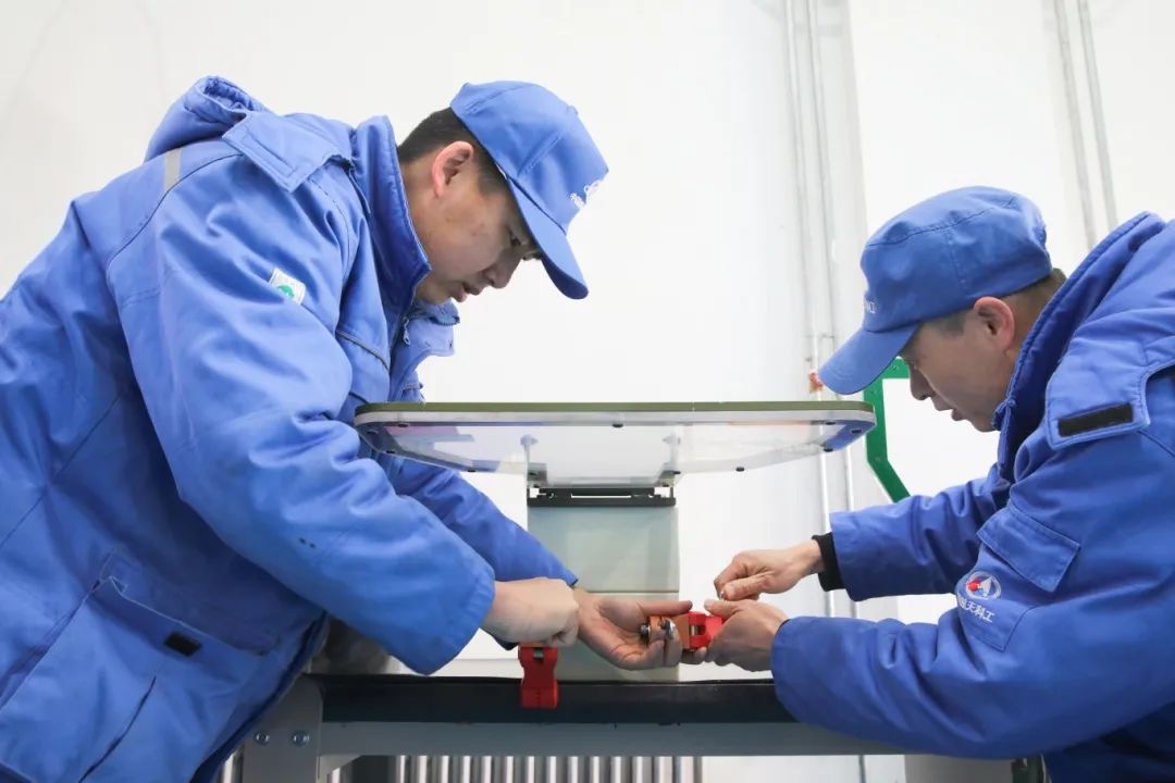 六院科保動力保障中心值班人員正在對污水處理運行設備進行維護檢修,查看設備運轉狀態、記錄相關數據,確保污水處理運行安全有序。
