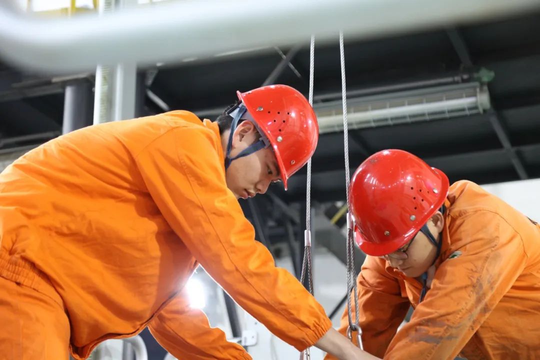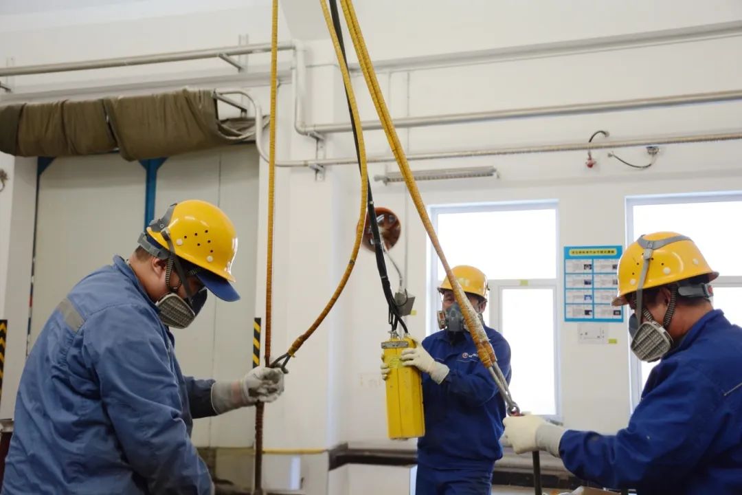 紅峽公司二車間一線職工緊密配合,將沉重的設備部件平穩吊起并準確放置到指定位置,確保及時轉運到下一道工序。