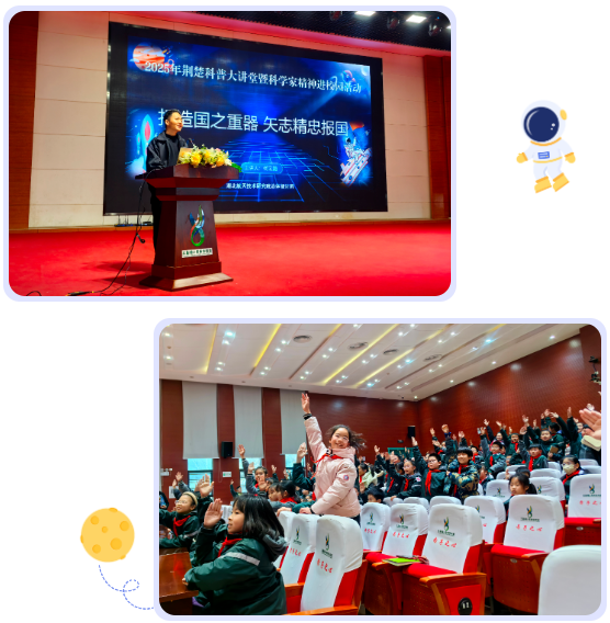 “快舟青年科普志愿服務隊”走進武漢常青樹實驗學校(三店校區),為200余名八年級學生送去航天知識課。火箭公司志愿者以“中國夢 航天夢 快舟夢”為主題,從人類探索太空歷史引入,將航天產品應用與空間望遠鏡、導航軟件、衛星電話等生活常見物品關聯,拉近航天知識與學生的距離。