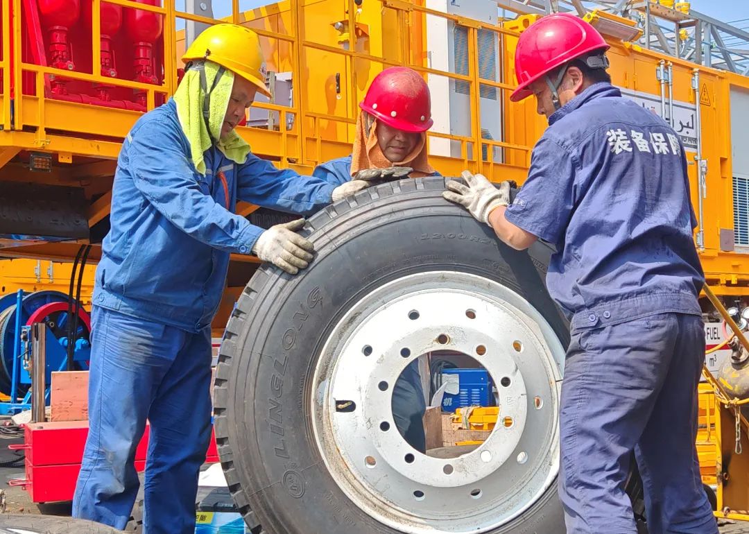 7月9日,氣象臺發布高溫橙色預警。炎熱夏季,正是設備問題高發之時,險峰公司機動保障部全力保障設備正常運行,機修工老張和小蘇正與設備廠家人員共同協作維修著故障設備。(圖文/張玉蓮)