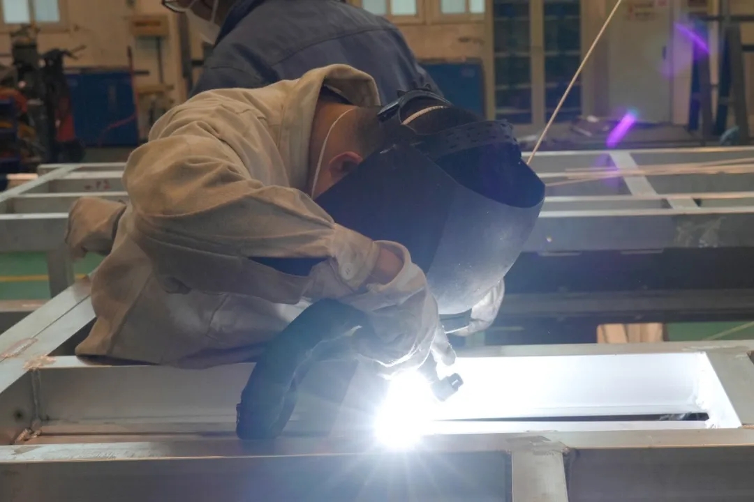 “門窗安裝手勁要一致,避免后期變形”“這里用中等力量敲一下,平面度就合格了”“這里要打磨平整,不然影響后面的裝配”……周五上午,萬峰公司產業園現場,鉗工劉師傅、唐師傅和王師傅三人圍著一個半成品箱體,共同討論著產品加工問題和操作要點。