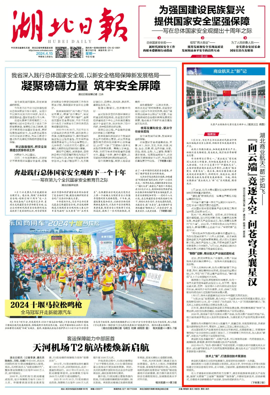 “商業航天作為我國航天事業的重要補充,為加快發展新質生產力注入新動能。湖北是我國商業航天產業的重要策源地,通過深入實施創新引領工程和產業壯大工程,目前商業航天全產業鏈競爭力全國領先。”4月9日,省委軍民融合辦相關負責人對湖北日報全媒記者說。