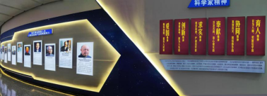 站在山巔遠(yuǎn)眺,距離“功勛飛機”不遠(yuǎn)處,有一個外形酷似太空艙的圓形建筑,這里便是三院“科學(xué)家精神教育基地”的室內(nèi)展館。