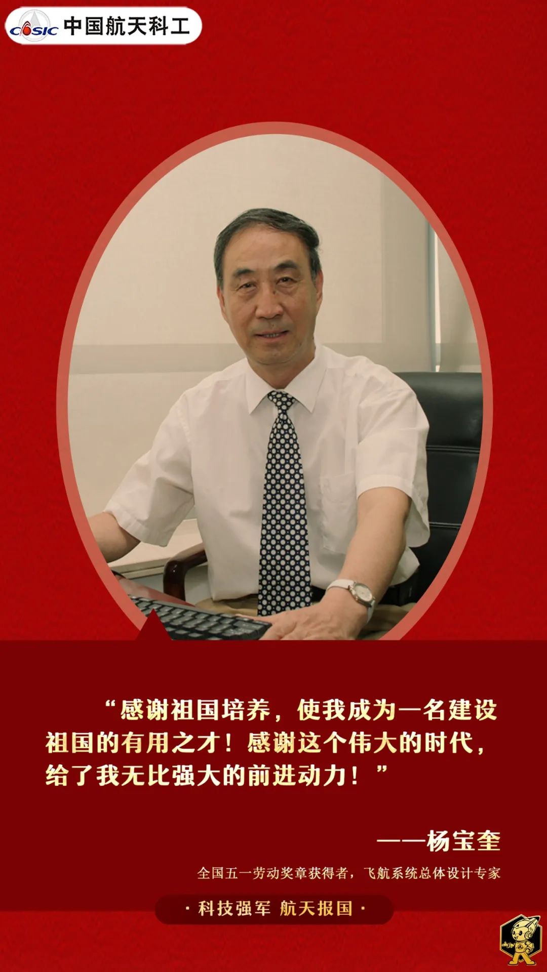 航天人的工作,風雨交加是常態,風雨無阻是心態,風雨兼程是狀態。面對風風雨雨,垂頭喪氣不是辦法,怨天尤人沒有意義,裹足不前更不可取,要學楊寶奎,以胡楊般堅韌頑強的意志,攻堅克難、頂壓前行、越戰越勇,才能沖出霧霾、撥云見日、振翅高飛。