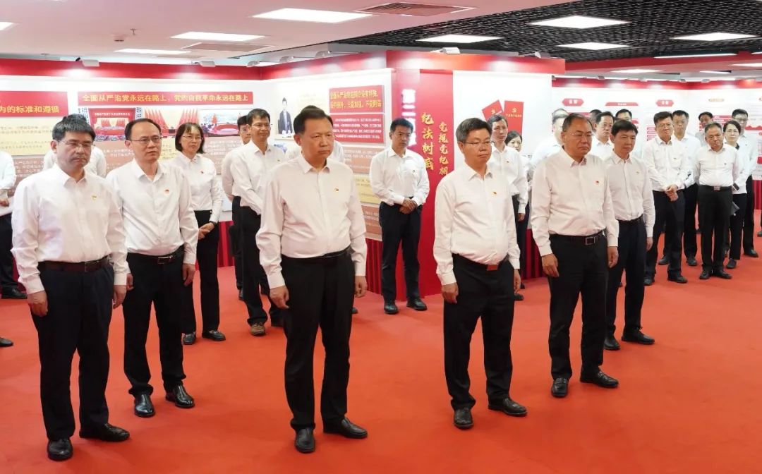 為深入學習貫徹習近平總書記關于全面加強黨的紀律建設的重要論述,推動黨紀學習教育取得扎實成果,6月26日下午,中國航天科工集團有限公司黨組參觀國務院國資委黨委“守紀鑄忠誠 擔當建新功”黨紀學習教育展。集團公司黨組書記、董事長陳錫明,黨組副書記、總經理龔波,黨組副書記黃興東,黨組成員、總會計師唐斌,黨組成員、副總經理劉著平,紀檢監察組組長、黨組成員李洋,總部各部門(機構)主要負責人和京區二級單位黨委書記參加本次參觀學習。