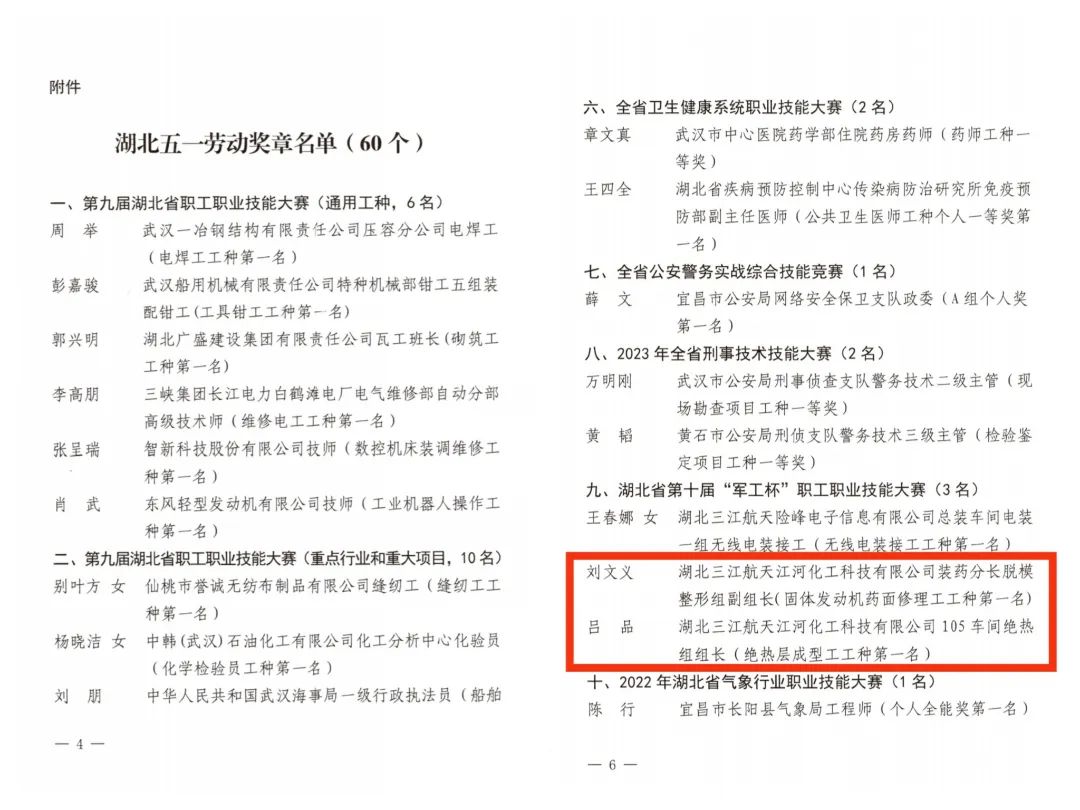 六院江河公司職工喜獲“湖北五一勞動獎章"等省級榮譽
