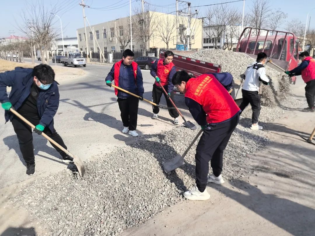 近日,航天精工團(tuán)委組織團(tuán)員青年開展志愿鋪路活動(dòng)。10余名青年志愿者對(duì)天津市金橋工業(yè)園內(nèi)坑洼不平的路段展開整修,方便了職工日常通行。(攝/陳星)