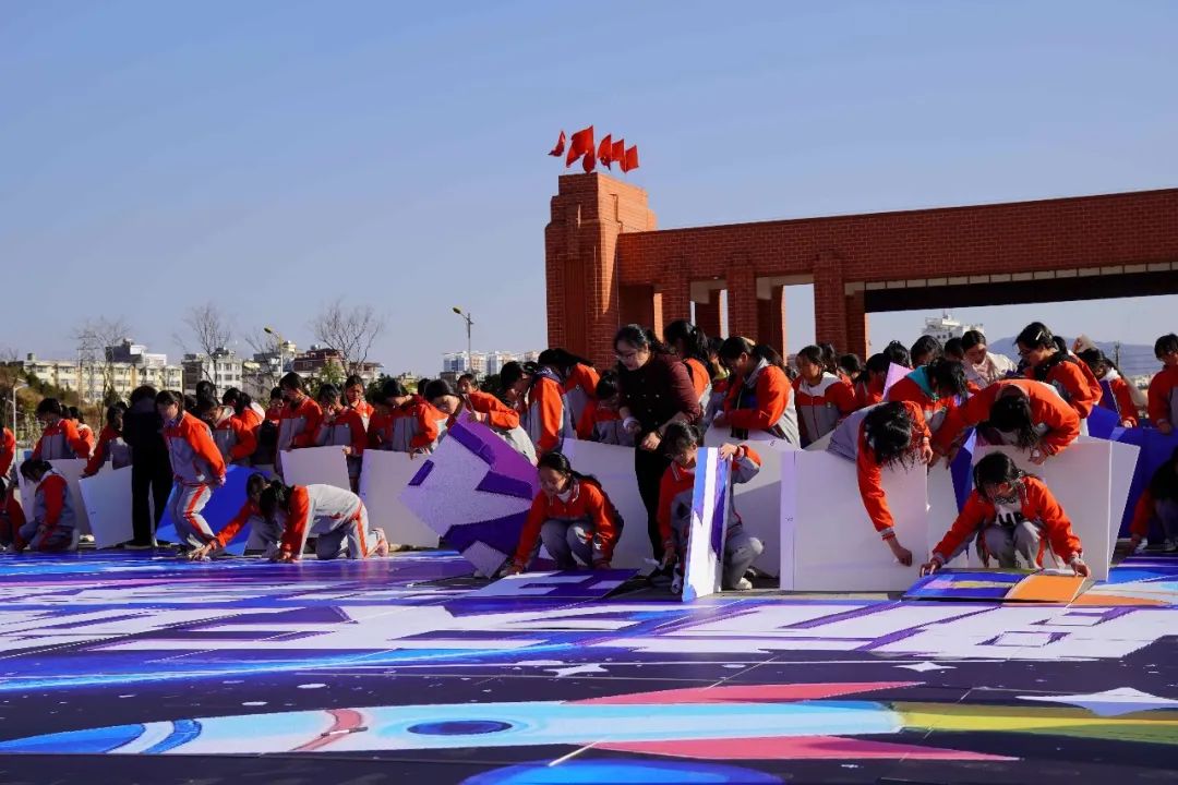 在知識(shí)尋寶環(huán)節(jié),500多位女童參與航天知識(shí)競(jìng)賽,通過(guò)答題獲得一塊屬于自己坐標(biāo)的追夢(mèng)大拼圖,根據(jù)手中拼圖的坐標(biāo)在操場(chǎng)上找到相應(yīng)位置,最后共同完成“航天筑夢(mèng)未來(lái) 佑我春蕾圓夢(mèng)”拼圖。
