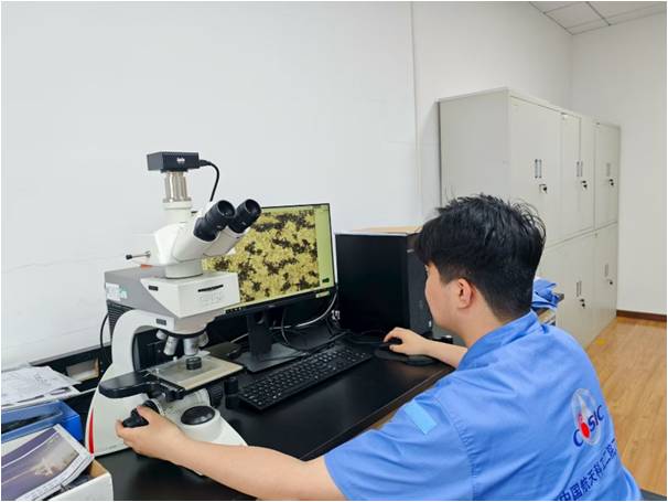 在相對(duì)安靜的金相制備與分析室內(nèi),則是另一番“于無聲處聽驚雷”的景象。金相組員小天正在顯微鏡下經(jīng)歷著一場(chǎng)更為精細(xì)的“尋微”之戰(zhàn)。經(jīng)過嚴(yán)謹(jǐn)打磨、拋光、腐蝕的樣品被逐一置于高倍顯微鏡下。小天伏在目鏡上,全神貫注,仿佛要將整個(gè)身心都融入材料微觀世界。他緩慢而精準(zhǔn)地旋動(dòng)調(diào)焦旋鈕,目光如最精密的探針,在馬氏體的森林與奧氏體的沙漠間反復(fù)巡弋,不放過任何一絲組織異常的蛛絲馬跡。寂靜中,唯有儀器細(xì)微的運(yùn)轉(zhuǎn)聲與客戶間偶爾壓低交流的聲音。突然,他目光一凝,在數(shù)十件試樣中又鎖定了一件組織異常試樣,果斷標(biāo)記,